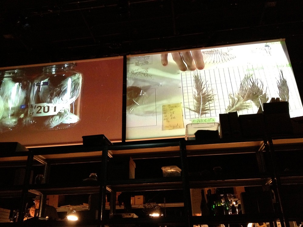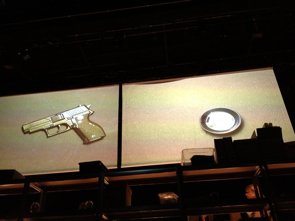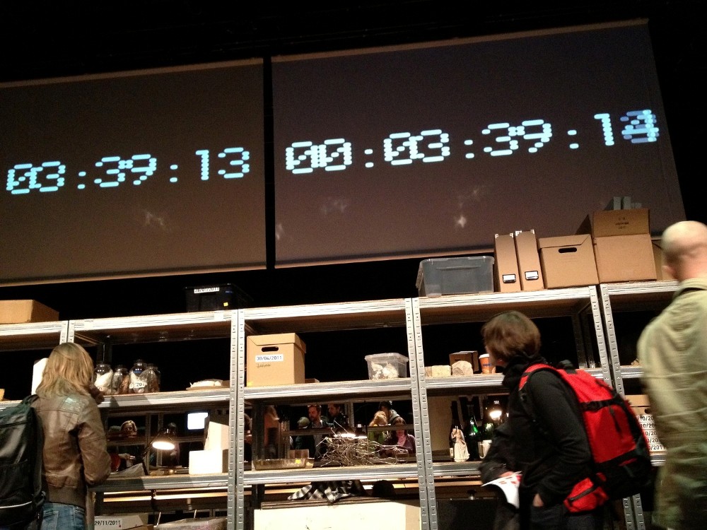 Die Zuschauer werden zunächst, bevor es richtig los geht, auf die Bühne gebeten. Dort dürfen sie Lagerregale mit den Utensilien des Jahres betrachten. Ohne zunächst zu wissen, was mit diesem Teller oder mit jener Entenfeder später geschehen wird. Wenn das eigentliche Stück beginnt, wird jeweils mit einem Klingelton ein neuer Tag, ein neues Ereignis aus 2011 aufgerufen. Bunte Meldungen wie die von einem Überfallopfer, das die im Kopf steckende Pistolenpatrone aus der Nase herausnieste anstatt kompliziert operiert werden zu müssen. Erdbeben und seltsame Massentode bei Tieren, der von religiösen Sektierern angekündigte und nicht erfolgte Untergang der Welt – all das mischt sich in einer Monty-Python-artigen Nummernrevue in deutscher und englischer Sprache. Das sollte künftig ins Fernsehen kommen, zum Beispiel an Silvester 2012. Dann könnte man sich das immer gleiche Dinner for one sparen.