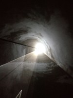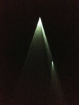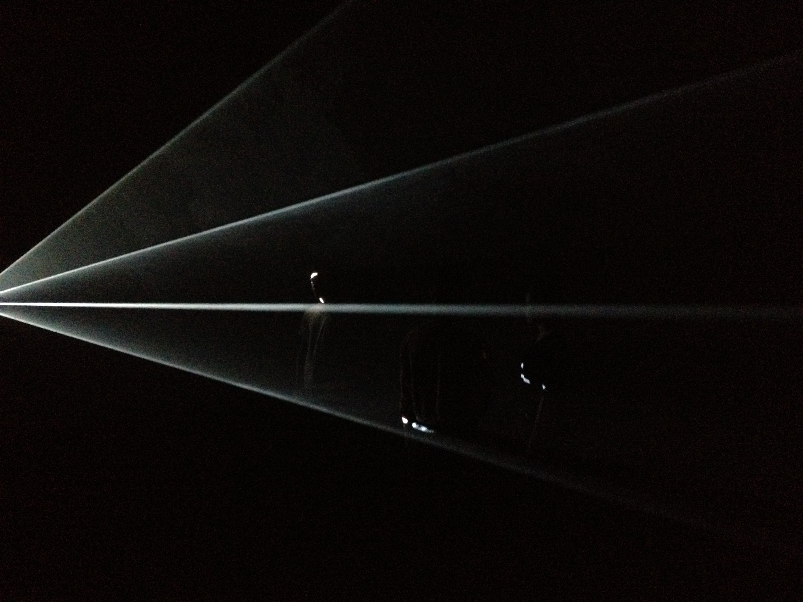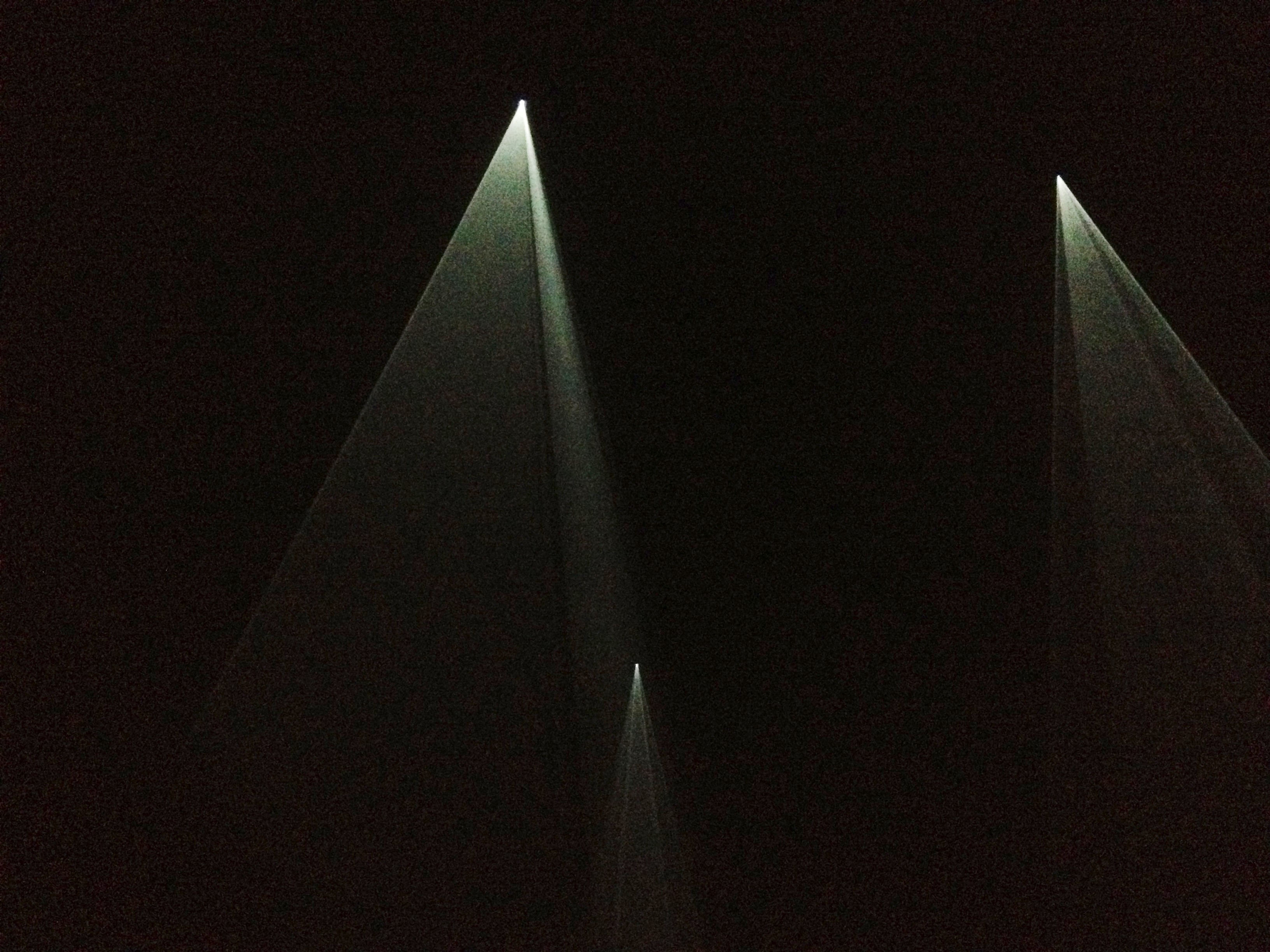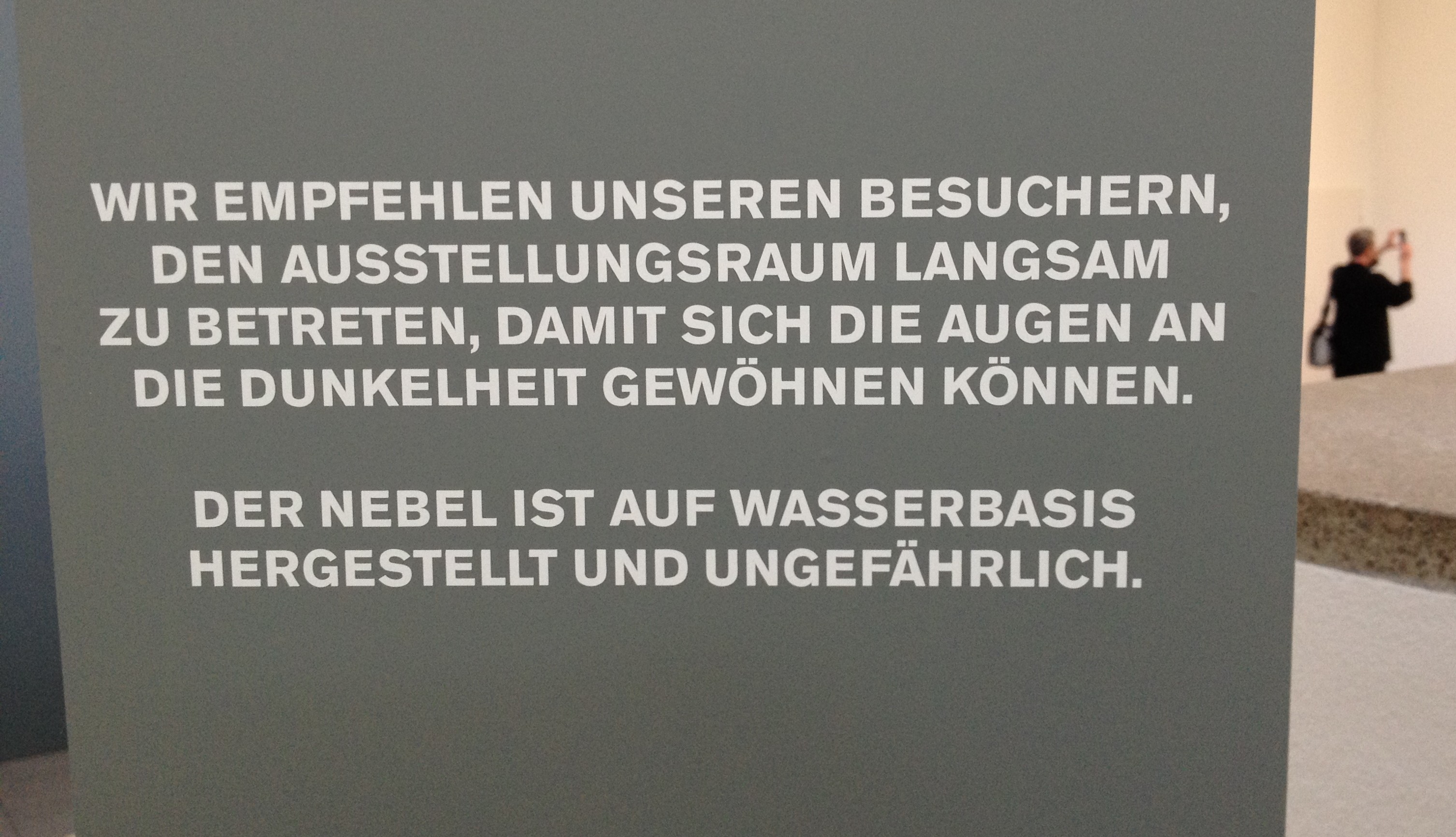 Mit großem Aufwand hat man gewissermaßen eine Halle in die Halle gebaut, um das Tageslicht abschotten zu können. Und dann durfte der New Yorker Künstler Anthony Mc Call die Regie übernehmen. Seine Spezialität: Er schafft mit Hilfe von Lichtstrahlen und Wasserdampf Räume, die es überhaupt nicht gibt. Das ist allerdings dem menschlichen Auge egal. Es nimmt kegelförmige, meterhohe Konstruktionen wahr, die an sakrale Räume erinnern. Man kann sie betreten, durchbricht dabei den feinen Nebel, der sich aber hinter einem sofort wieder schließt.