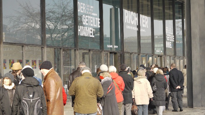 Panorama. Gerhard Richter. Es war die Ausstellung des Jahres. Auf lange Zeit wird man nicht mehr so viele Schlüsselwerke des bekanntesten und teuersten Künstlers der Welt an einem Ort sehen können. Darin sind sich die Fachleute einig. Das war wohl nur möglich, weil kein Leihgeber dem Meister zu seinem 80. Geburtstag einen Korb geben wollte. Wer noch rein will, der sollte sich beeilen. Informationen zur Ausstellung gibt es auf der Seite gerhardrichterinberlin.