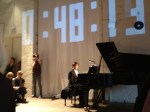 Es folgte das Stück „Europera 3“, so ziemlich das Gegenteil von 4´33´´. Denn hier treten zehn Schallplattenspieler (keine CD-Player!), zwei Herren am Flügel und sechs Opernsänger zum Wettstreit an. Ein Klangteppich, aus dem mal der Papageno, mal der Fidelio, mal eine dem Zuhörer unbekannte Figur herausragt. Wenn man sich gerade auf eine wunderbare Bariton- oder Sopranstimme (live) eingestellt hat, dann krächzt garantiert der Rossini von der LP dazwischen.