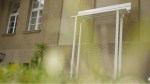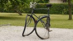Michael Sailstorfer lässt die grünen Fensterläden an der Front des Hauses am Waldsee einmal pro Stunde ein paar Minuten lang auf- und zuklappen. Hydraulich gesteuert, das ganze. Aber trotz dieser nüchternen Erklärung wirkt es auf den Betrachter gespenstisch, wenn er davor steht. Ein wenig so, als wolle das Haus selbst Kontakt mit uns aufnehmen, als würde es uns zuzwinkern (siehe den kurzen Film oben). Ein irritierender Moment ist auch die Begegnung mit Alicja Kwades Fahrrad, das vor der Villa abgestellt wurde. Es hat alles, was ein Fahrrad haben muss – Lenker, Sattel, Rahmen, Räder. Es ist aber, wie von Riesenhand, ganz absurd verbogen, so dass jeder sofort weiß: Auf diesem Rad wird niemals mehr jemand fahren können.