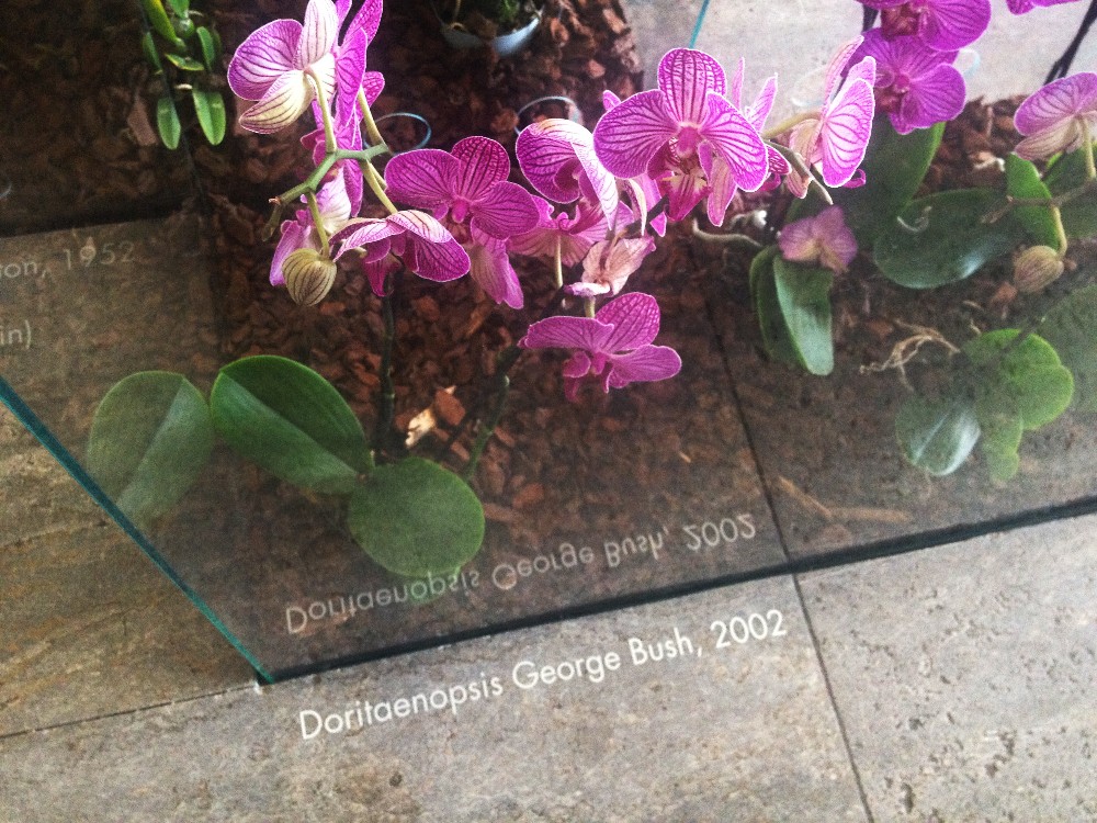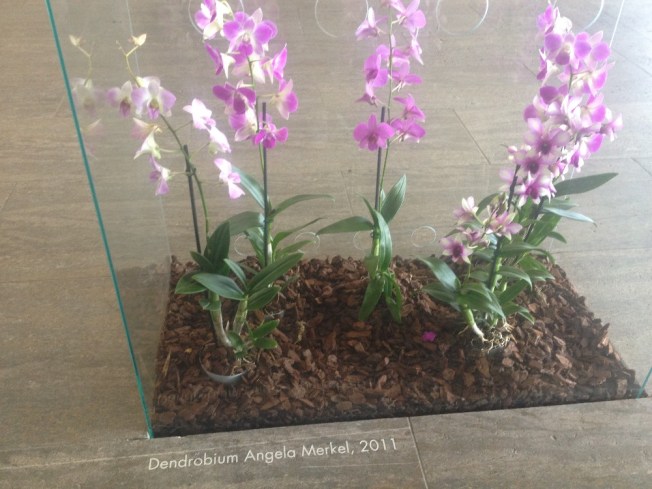 Warum das ganze? Brandlhuber war aufgefallen, wie viele Blumen mit den Namen von Politikern es gibt. So kam er auf sein Projekt „This is me, this is my country“. Zu sehen sind unter anderem „Maxillaria Gorbatschowii“, „Paphiodelium Lady M. Thatcher“ und „Doritaenopsis George Bush„. Im Haus der Kulturen der Welt sind sie alle gleich erfolgreich. Eine Orchidee blüht schöner als die andere. Man ist begeistert – unabhängig davon, wie man zu ihrem Namensgeber steht.