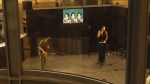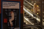 Wer eine der Veranstaltungen im Berliner Hauptbahnhof besucht (keine Reservierung, kein Eintrittspreis), der kann wahrhaft surreale Momente erleben. Etwa das früh um sechs Uhr dargebotene Stück Charavagi (Morgendämmerung) der Komponistin Calliope Tsoupaki mit der Flötistin Susanne Fröhlich. Oder das Nostalgie-Videokonzert mit Christiane Hommelsheim und Stella Veloce (siehe Fotos). Das E-Cello Stella Veloces dringt noch in weit entfernte Bahnhofsecken. Die geniale Stimme Christiane Hommelsheim (mal deutsch, mal englisch, mal französisch, mal in einem fesselnden Singsang ohne erkennbare Worte) vermag selbst flüchtige Reisende zu fesseln, die eigentlich etwas anderes im Sinn haben als moderne E-Musik.