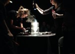 Aber der schönste Aspekt: Nach knapp 90 Minuten Show werden die Zuschauer zum Reste-Essen eingeladen. Jeder erhält einen Löffel und einer Serviette, dann darf er die Stationen abklappern. Die Kanapees, die Gurkensuppe, das Lakritzegelee mit Haselnüssen und Minze, die Schokolade mit Baiser und Sirup. So bekommt man auch sein Abendessen zusammen, wenn auch vielleicht nicht immer in der Reihenfolge Vorspeise – Hauptspeise – Nachspeise.