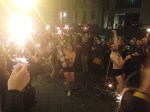 Und wie wurde ich zum Darsteller? Ganz einfach: Das Publikum musste vor dem Hebbel am Ufer auf das Eintreffen von Gob Squad warten und die Akteure mit Sternwerfen und Luftschlangen jubelnd empfangen (Foto oben). Das wurde von diesen ebenfalls mit ihren Kameras aufgezeichnet und bildete dann die Schluss-Sequenz des Films. So kam ich auf die Leinwand. Etwa für fünf Sekunden.