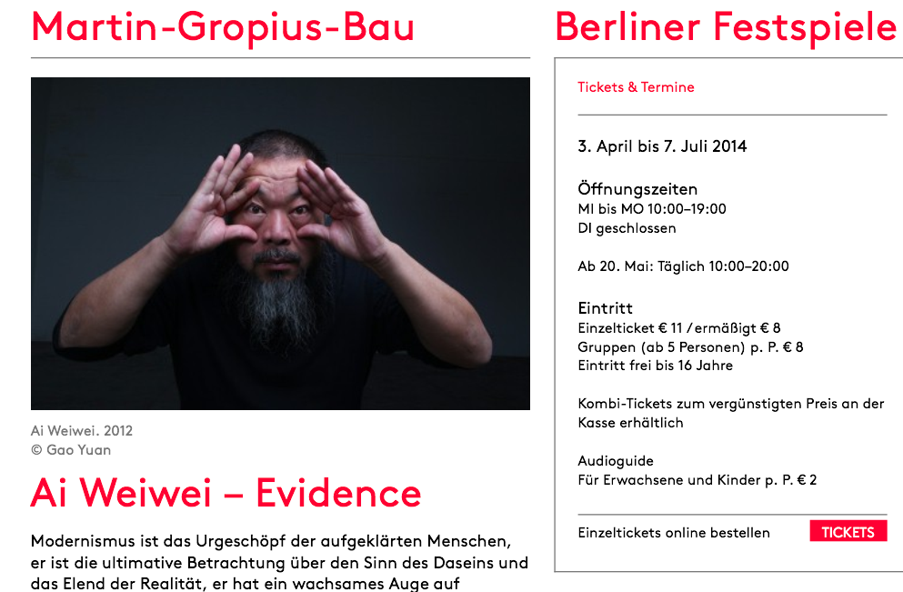 Schon vor der Eröffnung steht fest: Die neue Berliner Ausstellung von Ai Weiwei (3. April bis 7. Juli 2014) wird ein Publikumsrenner. Sie dürfte etwa in einer Reihe mit den Gesichtern der Renaissance im Bode-Museum, mit Frida Kahlo im Gropius-Bau und mit Gerhard Richter in der Neuen Nationalgalerie stehen. Wie reinkommen, ohne stundenlang warten zu müssen?