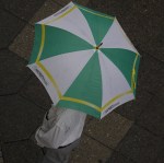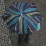 Bei Regen stellen sich den Berlinern spontane Styling-Fragen. Oder auch nicht, wenn man einfach zum nächstbesten Regenschirm greift. Von oben sieht das Gesamtergebnis jedenfalls ein wenig wie ein Kunstwerk aus, ob gewollt oder nicht.