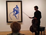 Die untere Fotoreihe der Galerie zeigt den Auftritt der Solisten David Drost (Cello) und Ralf Forster (Klarinette) im Museum Berggruen. Gemeinsam mit ihrer Kollegin Eva Sütterlin (Violine) gaben sie Solokonzerte in den Sälen mit den Werken von Picasso, Matisse und Braque. Kunsthistorikerinnen erläuterten die Gemälde, Zeichnungen und Skulpturen, vor denen die Besucher des Museums saßen.