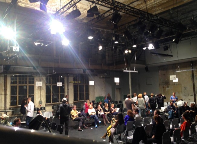 Dann wieder die Zuschauer. Sie wechseln die Plätze. Dieses Mal, um sich gegenseitig zu fragen, nach welchem Berliner Stadtteil sie aussehen. Ich wurde auf Kreuzberg geschätzt und bin aus Mitte. Umgekehrt schätzte ich eine Besucherin auf Friedrichshain und sie war aus Steglitz. Na ja.