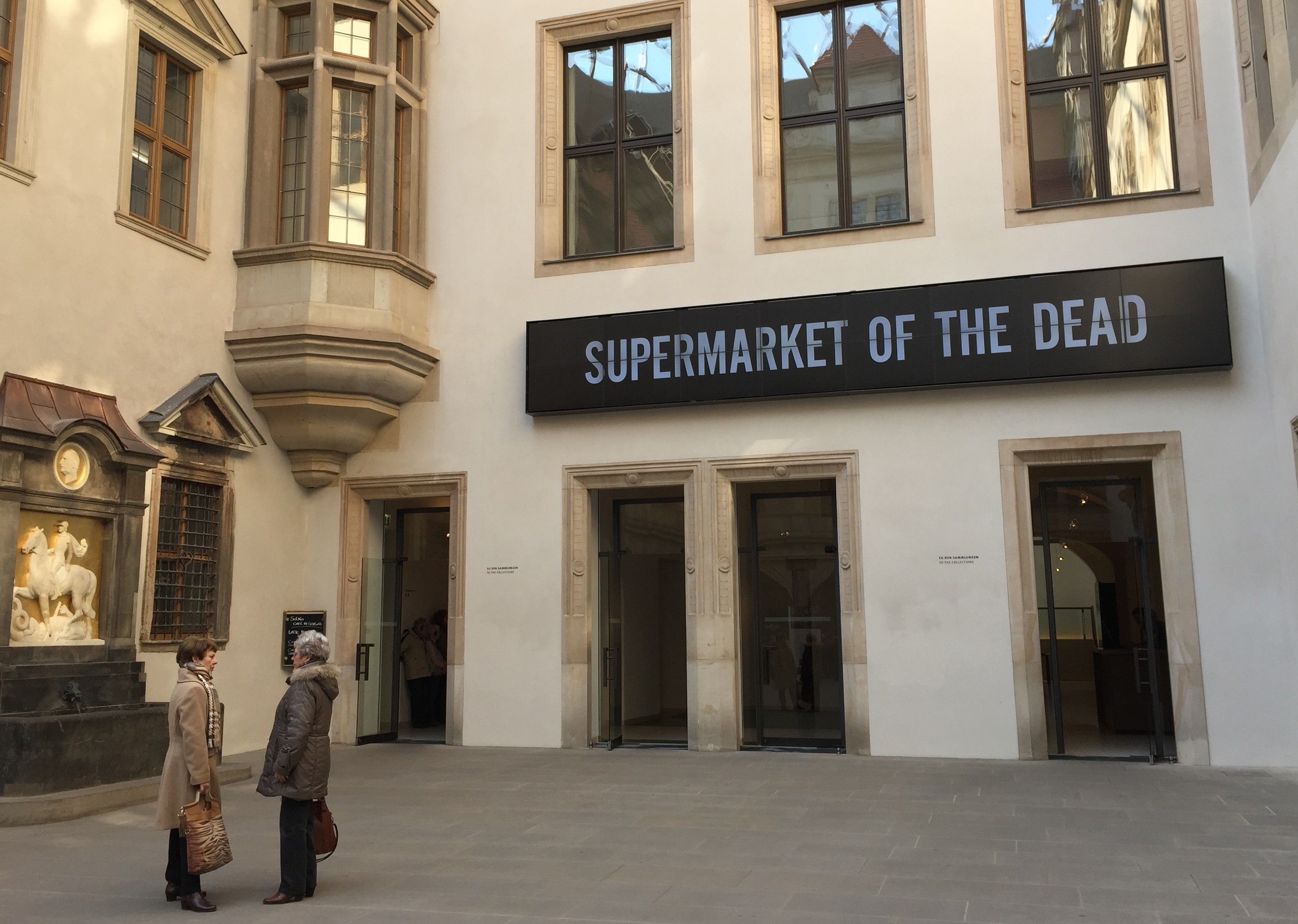Der eigentliche Clou ist aber der langgezogene „Showroom“ im zweiten Stock des Residenzschlosses, in dem der Supermarkt der Toten seinen Platz gefunden hat. Dort werden Tausende der Papierattrappen ausgestellt, die in China als Brandopfer dienen. Fein nebeneinander aufgereiht stehen da zum Beispiel riesige Mengen von Damen- und Herrenschuhen. Alle Produkte sind mit Phantasienamen versehen, die allerdings dicht am Original bleiben. Statt Coca Cola heißt es Caxine Cele, statt Camel heißt es Camcl. Der Besucher lernt zweierlei: auf welch sympathische Weise die Chinesen ihrer Toten gedenken und wie weit sich die Vorstellungen von Wohlstand inzwischen auf der ganzen Welt schon gleichen.