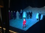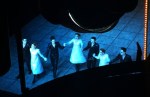 Das Drama von Doktor Faust wird in den vier Stunden auf die gewohnte Wilson´sche Art dekonstruiert. Die Schauspieler zappeln in abgehackten Bewegungen über die Bühne. Einzelne Rollen werden gerne mal multipliziert. So gibt es hier gleich fünf Mal den Heinrich Faust und drei Mal das Gretchen, was erstens die Pärchenbildung erschwert und zweitens den Zuschauer anfangs etwas irritiert. Ja, und natürlich tragen die Schauspieler meistens Handschuhe und sprechen auffallend oft mit einer Falsettstimme.