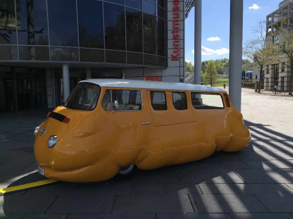 Die Ausstellung „Fichte“ im Kunstmuseum Wolfsburg ist bis 13. September 2015 geöffnet. Vor dem Eingang erwartet die Besucher übrigens eine Currywurstbude in Gestalt eines von Erwin Wurm entworfenen adipösen VW-Busses. Was sonst sollte es auch in Wolfsburg sein.