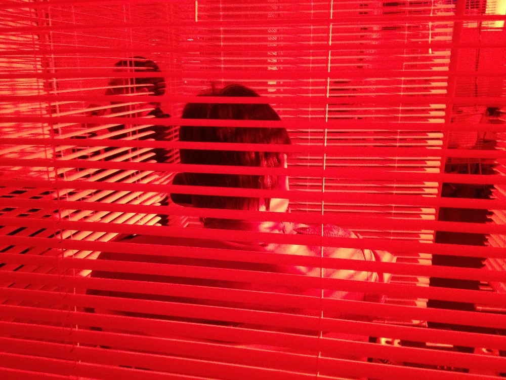 Wir sind alleine, mein Telefon und ich. Um uns herum bilden vier Jalousien mit geschlossenen Lamellen eine Art Kabine. Und plötzlich läutet es.